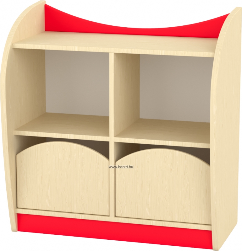 Marci íves kisszekrény - 2 fiókos, juhar-piros