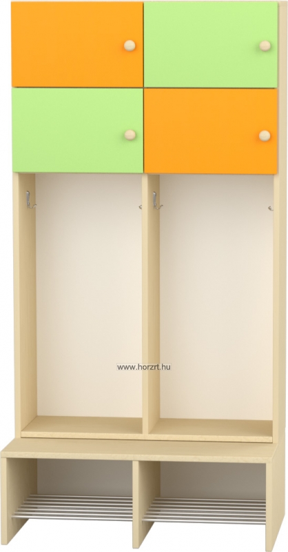 Rendelhető rácsos vagy polcos cipőtartó résszel, juhar vagy világosbükk alapszínben, attól függően mi illik legjobban az adott csoporthoz.