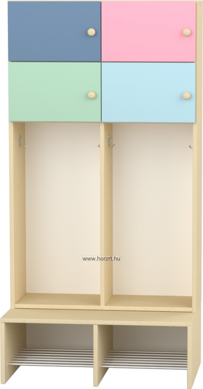 Rendelhető rácsos vagy polcos cipőtartó résszel, juhar vagy világosbükk alapszínben, attól függően mi illik legjobban az adott csoporthoz.