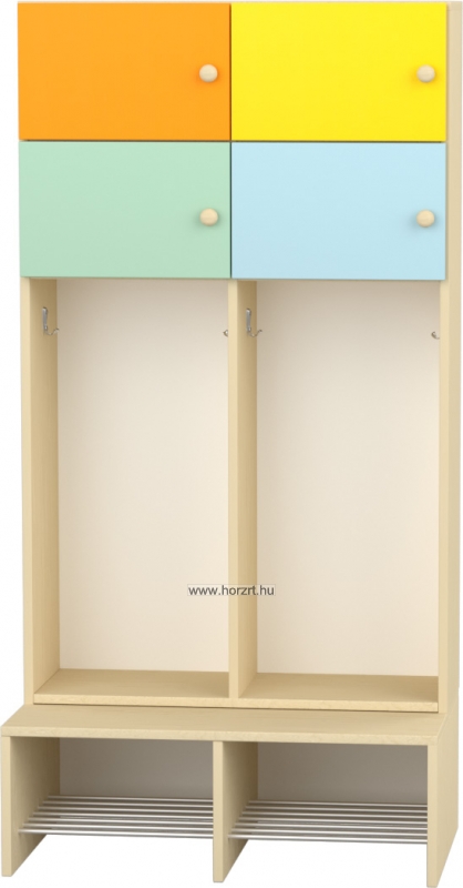 Rendelhető rácsos vagy polcos cipőtartó résszel, juhar vagy világosbükk alapszínben, attól függően mi illik legjobban az adott csoporthoz.
