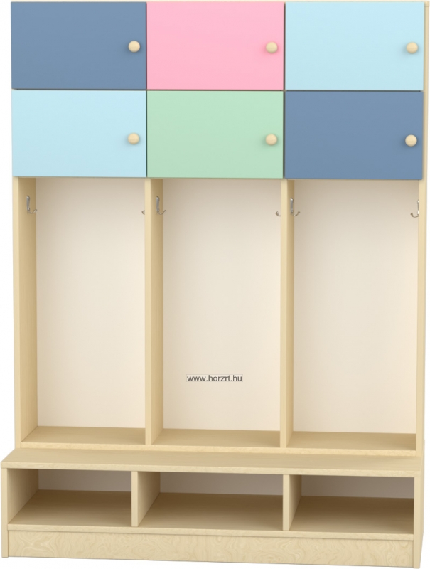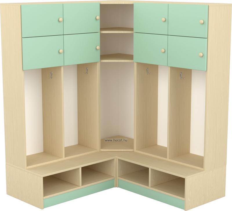 Rendelhető rácsos vagy polcos cipőtartó résszel, juhar vagy világosbükk alapszínben, attól függően mi illik legjobban az adott csoporthoz.