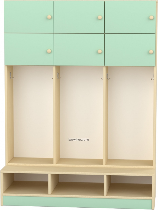 Rendelhető rácsos vagy polcos cipőtartó résszel, juhar vagy világosbükk alapszínben, attól függően mi illik legjobban az adott csoporthoz.