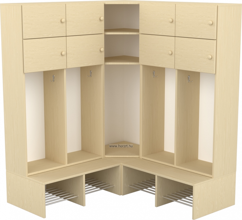 Rendelhető rácsos vagy polcos cipőtartó résszel, juhar vagy világosbükk alapszínben, attól függően mi illik legjobban az adott csoporthoz.