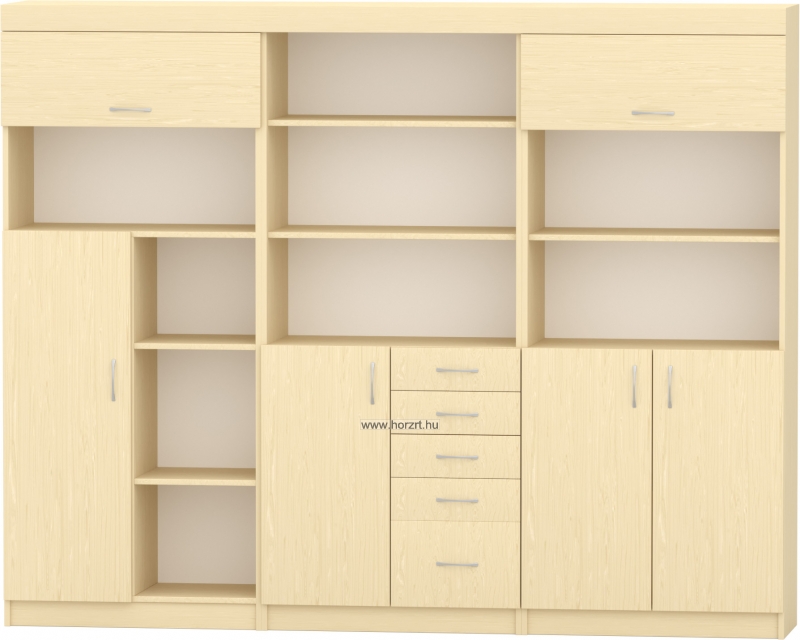 A magas elemeket elegáns díszléccel és duplavastag tetőelemmel láttuk el, amely elegáns külsőt ad a szekrényeknek.