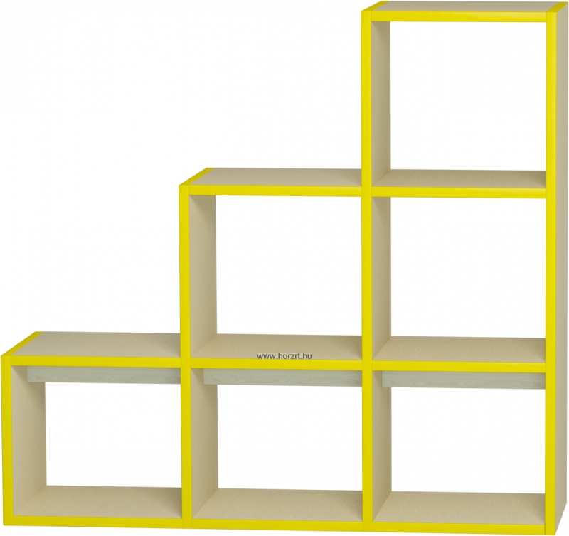 Kiegészíthetjük tárolódobozokkal, is, de a polcra elhelyezett játékok is színesítik.