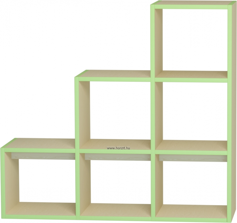 Kiegészíthetjük tárolódobozokkal, is, de a polcra elhelyezett játékok is színesítik.