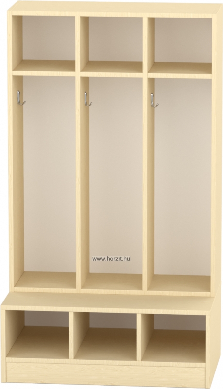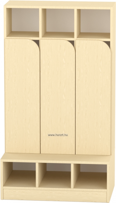 Az öltözőszekrényhez rendelhetők színes, vagy natúr színű ajtók is, amelyek elrejtik a szekrényekbe pakolt ruhákat, kincseket. A szekrény tetejére vásárolható leesésgátló mely egyben jeltartóként is funkcionál. Ezzel a kibővítéssel az öltöző tetejére is pakolhatunk, nem fog lecsúszni onnan semmi. Készreszerelt termék, nincs vele más teendő mint a helyére beállítani. A Komfort családnak van 3 fős, 4 fős és 5 fős változata is, így biztosan összeállítható a csoportlétszámnak megfelelő öltözőmennyiség. Több csoport esetén akár az eltérő ajtószínekkel is megkülönböztethetjük a csoportokat. Ülésmagasság 28 cm, egy gyerekre jutó fakk belső szélessége 23,8 cm, a felső, polcos tárolóhely belső magassága 21,4 cm.