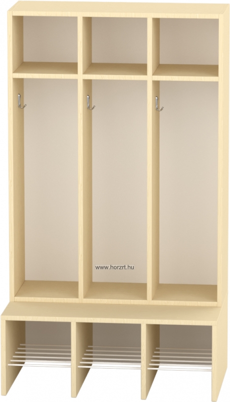 Komfort gyermeköltöző 3 fős, rácsos cipőtartóval-juhar alul ajtós