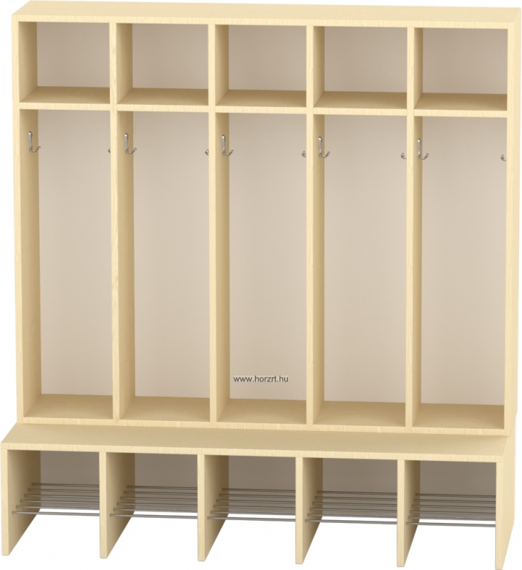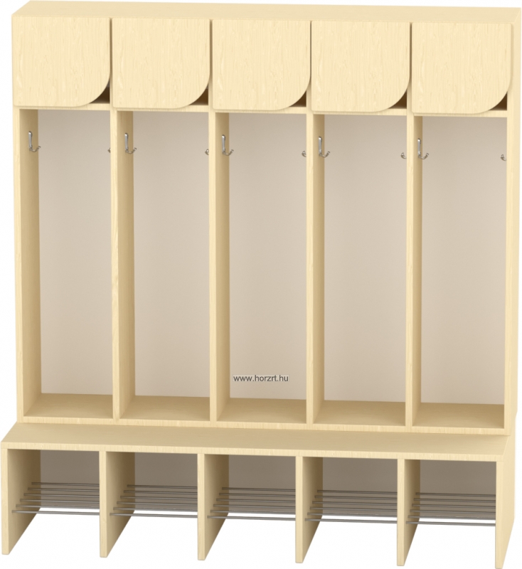 Komfort gyermeköltöző 5 fős ,rácsos cipőtartóval-juhar, felül ajtós