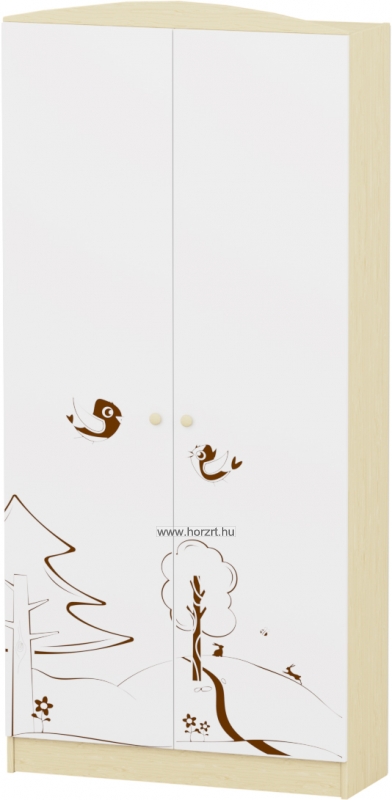 Kedves, mesebeli díszítésük otthonos légkört teremt a gyermekek számára. Lekerekített széleinek köszönhetően rendkívül biztonságos, nincsenek élek, sarkok, melyektől a gyerekek megsérülhetnének. A Sziluett szekrények alapszíne juhar, ehhez választhatók a kínálat szerinti: - pasztellkék, - zöld, - fehér színű díszelemek. A gyártástechnológiának és a magas minőségi követelményeknek köszönhetően masszív és hosszú élettartamú. Esztétikumát és használati idejét növeli, hogy a bútorfrontok anyagukban martak, illetve külső csavarozás mentesek. Laminált bútorlapból készült, lekerekített ABS élzárással. Készreszerelt termék.