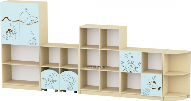 Sziluett Vízivilág szekrény, gurulós tárolókkal - pasztellkék