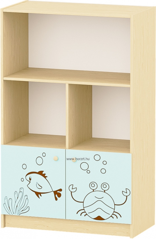 Sziluett Vízivilág 4 fakkos, polcos, alul teliajtós szekrény - pasztellkék-juhar