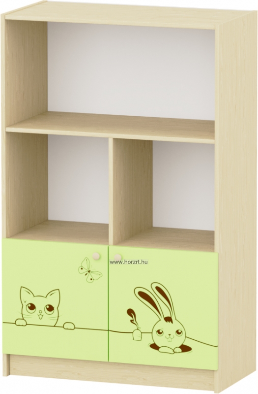 Sziluett Meserét 4 fakkos, polcos, alul teliajtós szekrény - zöld-juhar
