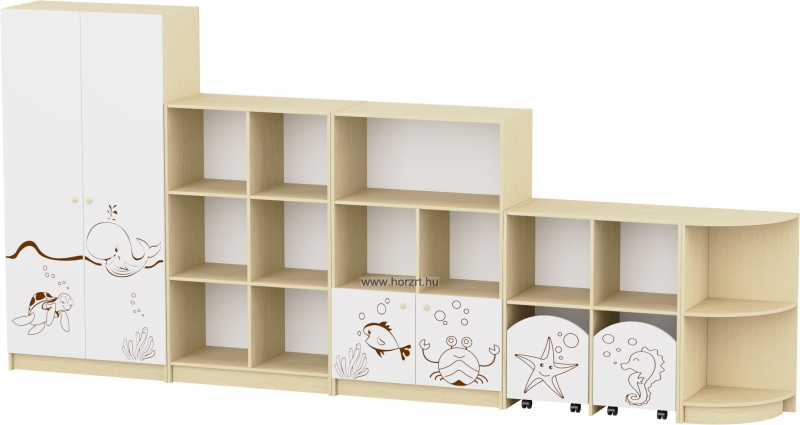 Sziluett Vízivilág teleajtós, 3 polcos szekrény - fehér-juhar