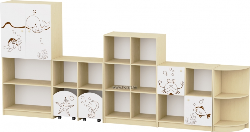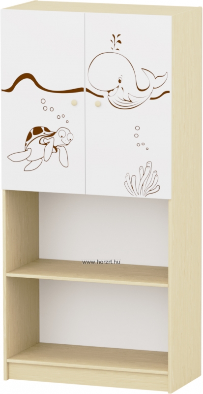 Sziluett Vízivilág 3 polcos, felülajtós szekrény - fehér-juhar