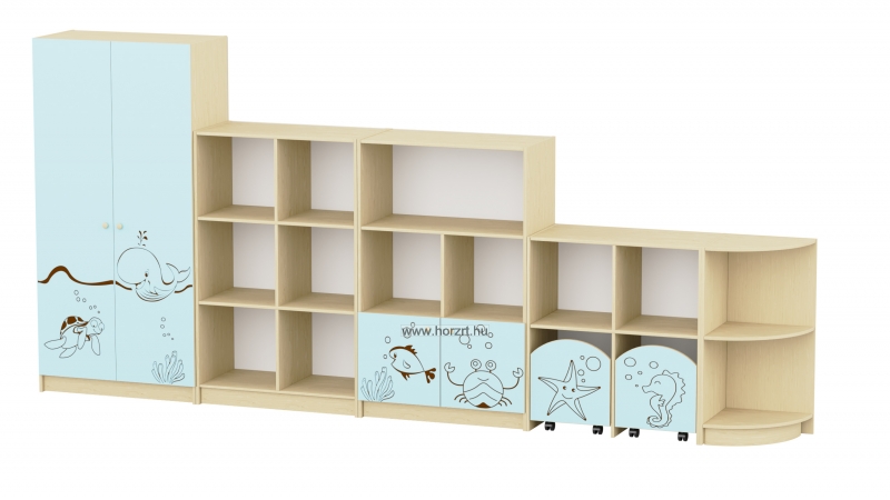 Sziluett Vízivilág szekrénysor - pasztellkék-juhar