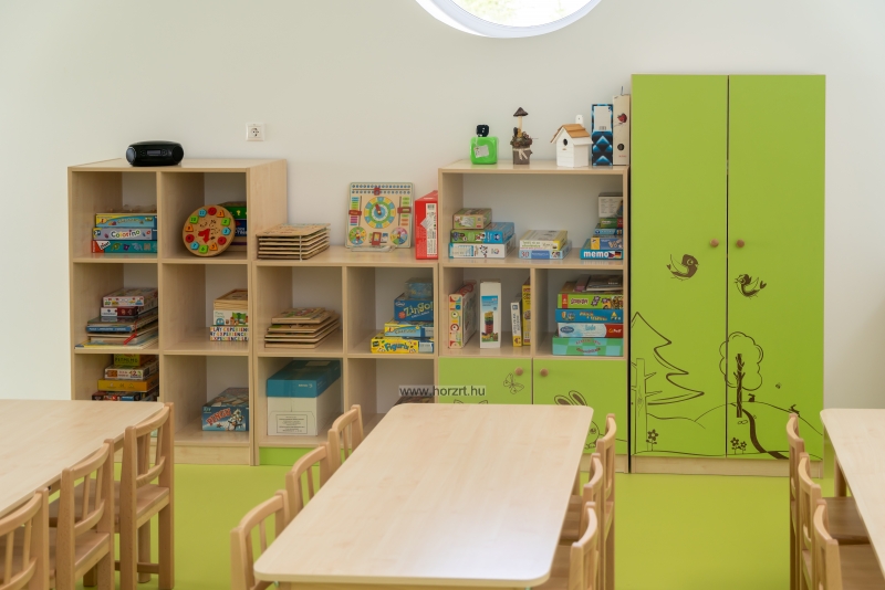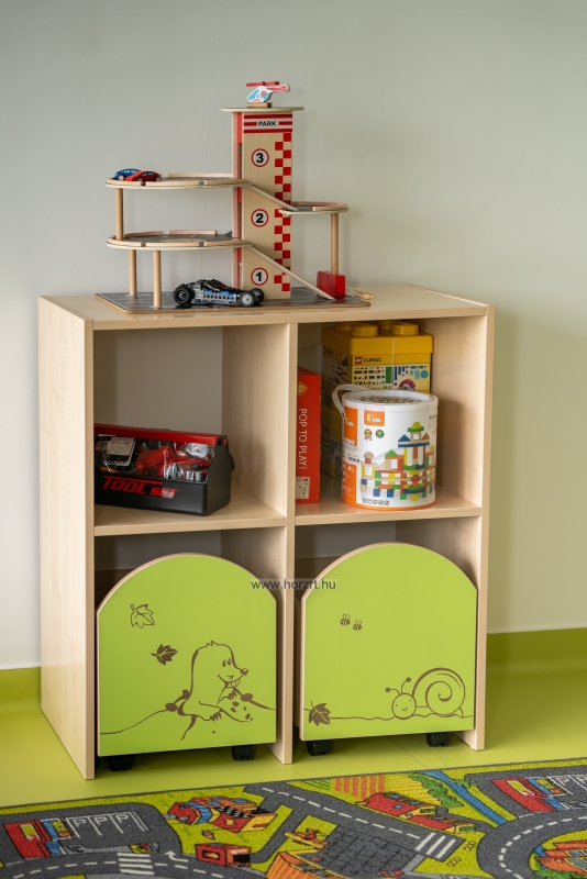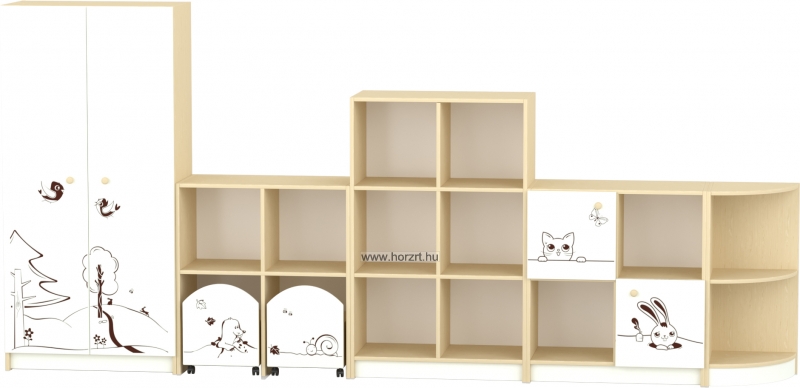 Varázsoljuk egyedivé a csoportszobát a Sziluett Vízivilág és a Sziluett Meserét bútorcsaláddal! A kedves figurák otthonosabb környezetet teremtenek a gyermekeknek. Az anyagában mintázott ajtók, fiókok díszei mind a bútornak, mind a csoportszobának. A bútor alapszíne juhar, a frontok színe választható. Anyaga: laminált bútorlap, lekerekített ABS élzárással.