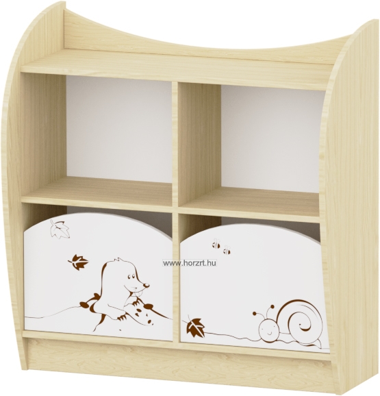 Kedves, mesebeli díszítésük otthonos légkört teremt a gyermekek számára. Lekerekített széleinek köszönhetően rendkívül biztonságos, nincsenek élek, sarkok, melyektől a gyerekek megsérülhetnének. A Sziluett szekrények alapszíne juhar, ehhez választhatók a kínálat szerinti: - pasztellkék, - zöld, - fehér színű díszelemek. A gyártástechnológiának és a magas minőségi követelményeknek köszönhetően masszív és hosszú élettartamú. Esztétikumát és használati idejét növeli, hogy a bútorfrontok anyagukban martak, illetve külső csavarozás mentesek. Laminált bútorlapból készült, lekerekített ABS élzárással. Készreszerelt termék.