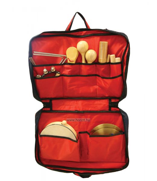 Tartalma: 1 pár Réz cintányér, 1 db Triangulum (16 cm), 1 db Triangulum (19 cm), 1 db Tornadob ütővel, 1 db Recés agogo, 1 pár Ritmusfa, 1 pár Maracas, 1 db Nyeles kasztanyetta, 1 db Csörgő tojás, 1 db Félkör száncsengő A hangszerek igényes, fakkokkal ellátott zipzáros tárolóban vannak elhelyezve, igény esetén nyitott állapotban felakasztva is tárolhatóak benne az eszközök.