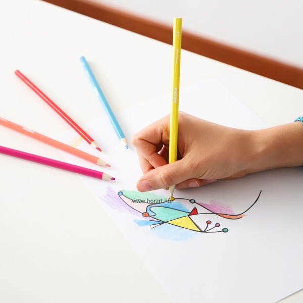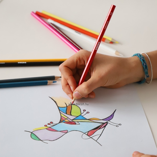 Lakkozott, hexagonális színes ceruzák, 12 élénk és fényes színben, 2,9 mm-es hegyátmérővel rendelkeznek. A ceruzák remekül alkalmasak a különböző árnyalatok és színek keverésére, így lágy fény-árnyék hatások érhetők el. Bármilyen típusú papíron használhatók