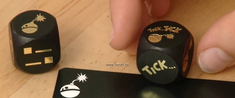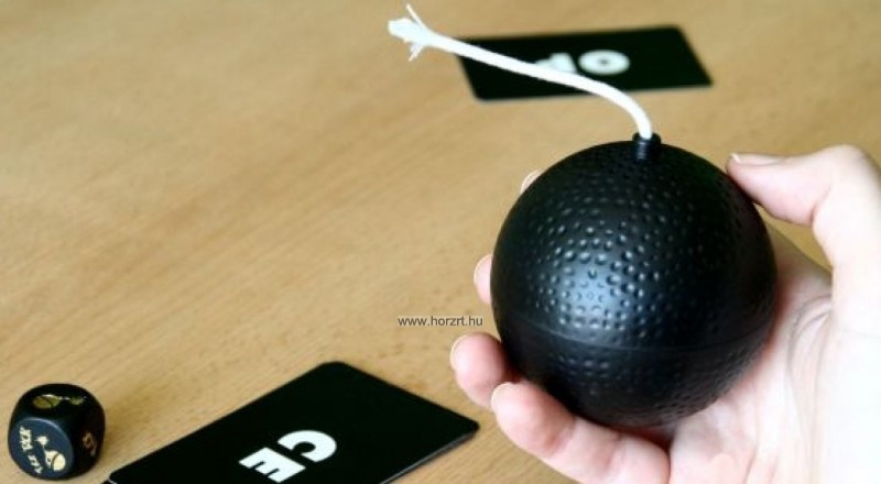 Akinél a bomba van, annak szót kell képeznie a kártyán lévő szótöredék kiegészítésével, a kockán látható feltétel betartásával.