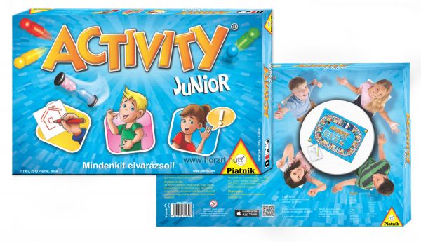 Az Activity Junior játékban a gyermek szókincséhez igazodó szavakat kell körülírni, lerajzolni vagy éppen elmutogatni. Annyi idő áll rendelkezésünkre, amíg a homokóra lepereg. Melyik csapat lesz a legügyesebb és szerzi meg a legtöbb pontot?
