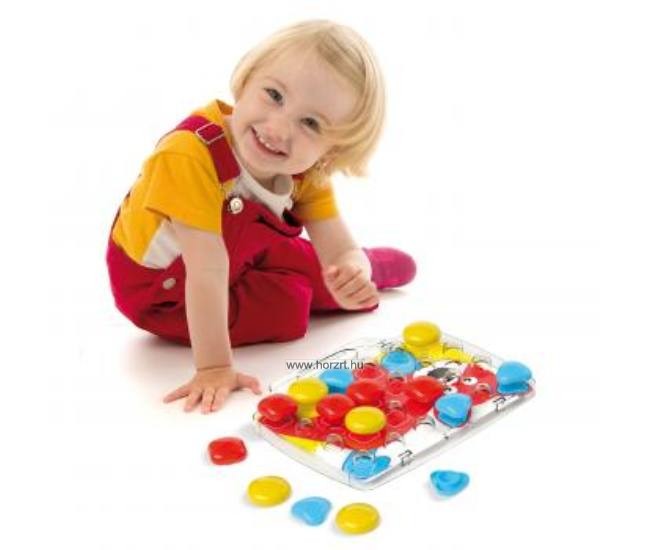 Pötyi készlet a legkisebbeknek. A változatos formák és színek játékra ösztönzik a kicsiket. A feladatkártyák segítségével a szín és a formaillesztést kiválóan gyakorolhatják a gyerekek. A pötyik formája és a kialakítása miatt biztonságos fogást biztosít.