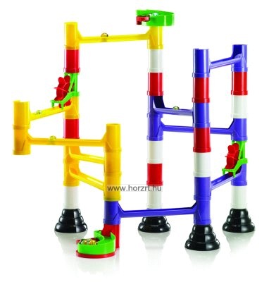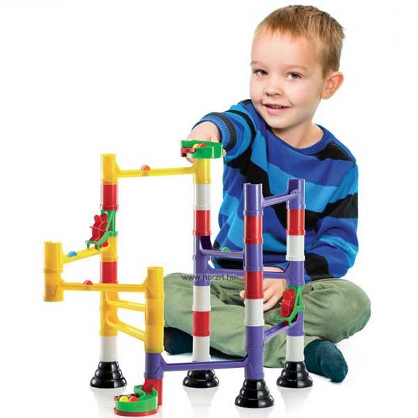 45 db elemből álló készlet igazi kihívás a gyermekek számára. Az elemek 4,5-18 cm közöttiek.Alkoss minél izgalmasabb golyópályát.