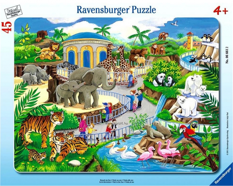 Tudod, milyen állatok élnek az állatkertben? Ha kirakod ezt a 45 db-os kirakót, megnézheted az állatok élőhelyeit is. A puzzle egy állatkert egzotikus állatait mutatja be.