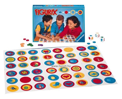 A három dobókockán különböző színű gyűrűk, körök és figurák láthatóak. Ki fedezi fel elsőként a dobott kombinációt? Az izgalmas játék élvezetessé teszi a jó megfigyelés és gyors reagálás képességének kialakulását.