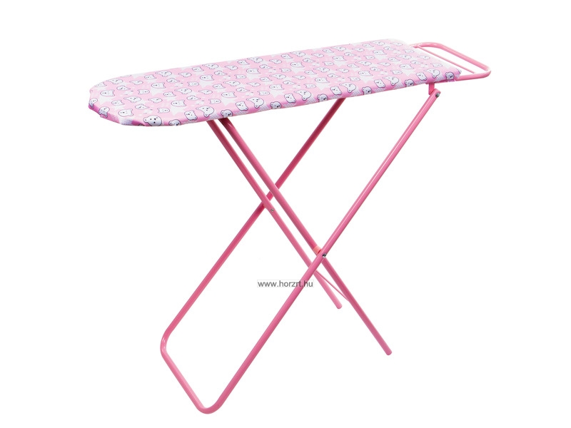 Gyermek vasalódeszka rózsaszín színű fémszerkezettel, rózsaszín alapon macimintás huzattal összecsukható kivitelben. Méretei: 71,5x25,5x56 cm