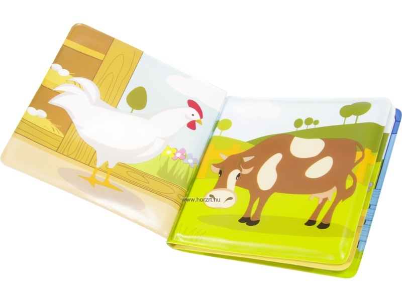 A kis könyvecske 8 interaktív oldalból áll és teljesen vízálló. A vidám színeknek és formáknak köszönhetően felkelti a babák figyelmét.