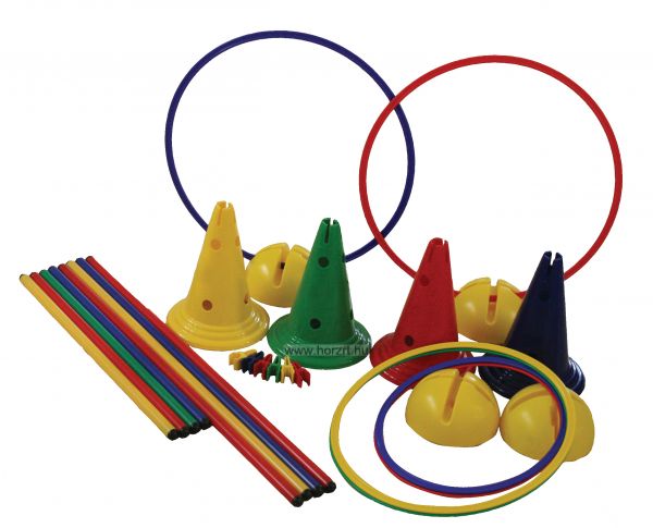 A készlet segítségével ügyességi, akadálypálya vagy akár versenypálya is építhető. Aktív csoportos foglalkozások és órák kiváló eszköze.