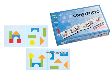 Mely elemek összetételével áll össze a konstrukció? A dominókon található színes formák összehasonlításával és kombinációjával, gondolati síkon elvonatkoztatva kell részekre bontani a képeket. A doboz két különböző nehézségű játékot tartalmaz!