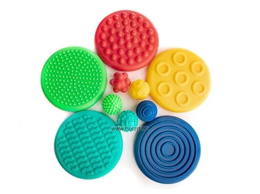 - 5 különböző textúrájú érzékszervi korong (20 cm átmérőjű)
