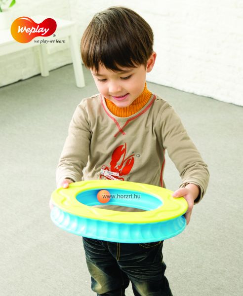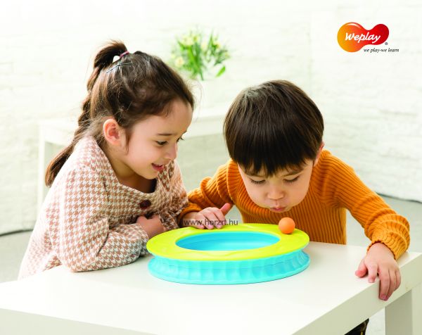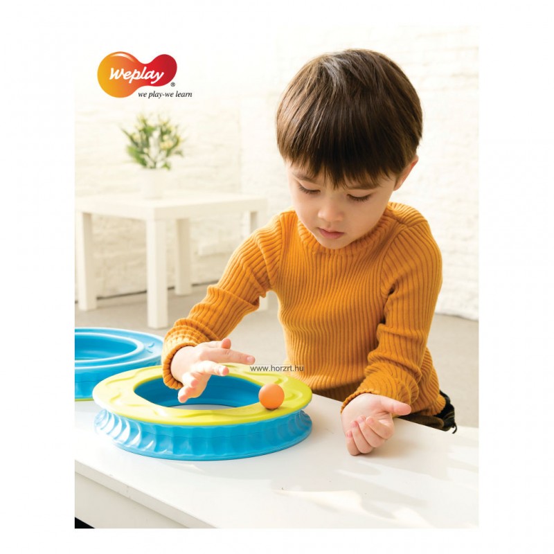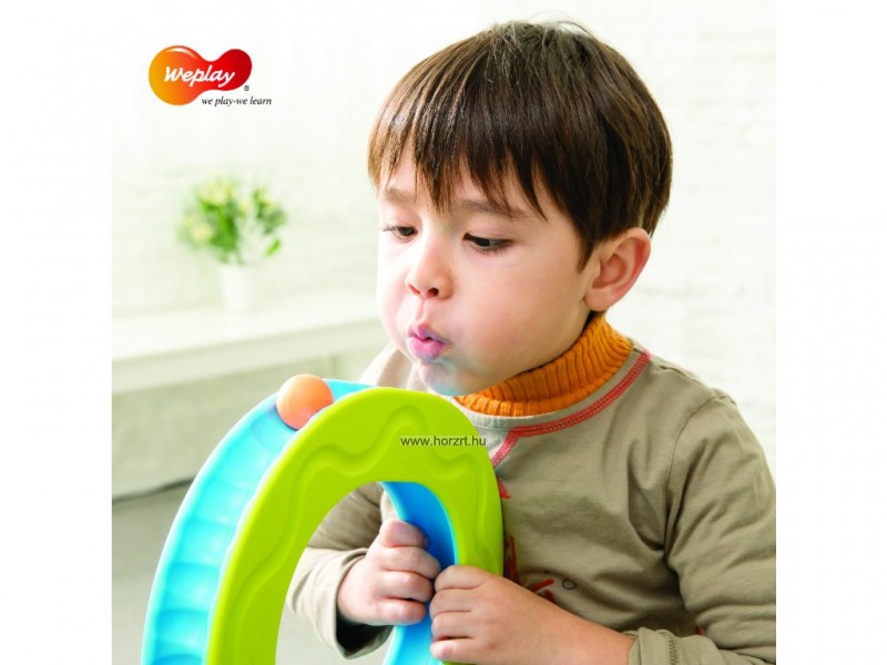 Fantasztikus szem-kéz koordinációs készséget fejlesztő és logopédiai gyakorlatban is használható játék! A pálya óvatos elforgatásával, döntögetésével kell a golyót folyamatosan körbe-körbe gurítani. Alsó és felső oldalán, a külső és belső köríven egyaránt gurítható a golyó. Használható páros játékként is erősítve a kooperációs készséget. Csoportos és egyéni fejlesztő órák tökéletes eszköze. Logopédiai gyakorlatban (fújós játékként használva), fejleszti a légzéstechnikát, elősegíti a helyes beszéd kialakulását. Ügyesnek kell lenni, hogy ne essen le A Weplay márka 1999-ben indult el Tajvanon, azzal a céllal, hogy olyan termékeket gyártson, amik elősegítik a gyermekek motorikus készségeinek fejlődését, kommunikációját és kreativitását. A Weplay kisgyermekkori neveléssel kapcsolatos szakértelme a sarokköve a tervezési célkitűzéseinek, amelyek célja, hogy gyakorlatias, mozgatható és tárolható, nagy játékértékkel rendelkező berendezéseket készítsenek, amelyek elősegítik a készségfejlesztést. Szisztematikus termékek a holisztikus fejlesztéshez A Weplaynél a gyermekek holisztikus igényei szerint fejlesztik szisztematikus termékeiket, beleértve a vizuális-auditív-tapintási észlelést, a motoros készségeket, az egyensúlykoordinációt, a finommotorikus készségeket és a kreatív játékot. Az univerzális dizájn alapján, Tajvanon készült Weplay termékek segítenek a gyermekek boldog és egészséges felnövekedésében.
