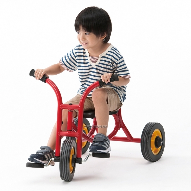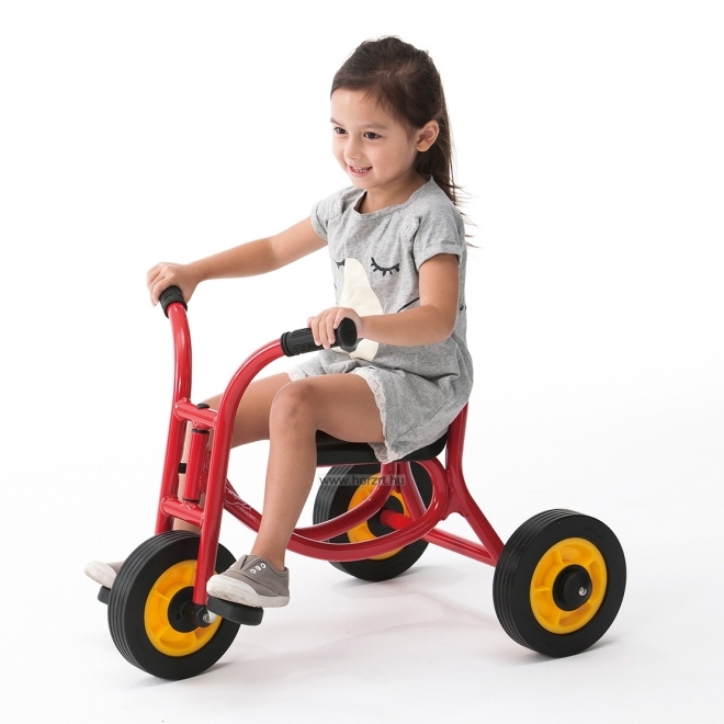 Masszív kivitelű, ugyanakkor kifejezetten óvodai felhasználásra tervezett tricikli. Rendkívül erős, strapabíró váz. Csendesen gördülő kerekek. (A keréktárcsákon nincs lyuk, a balestek elkerülése érdekében.) Masszív pedálok. (A pedálokon nincs lyuk, a lábujjak beszorulásának elkerülése érdekében.) Szétszerelt állapotban szállítjuk. Összeszerelése nem igényel szakértelmet, könnyen, gyorsan megoldható. S-es méret.