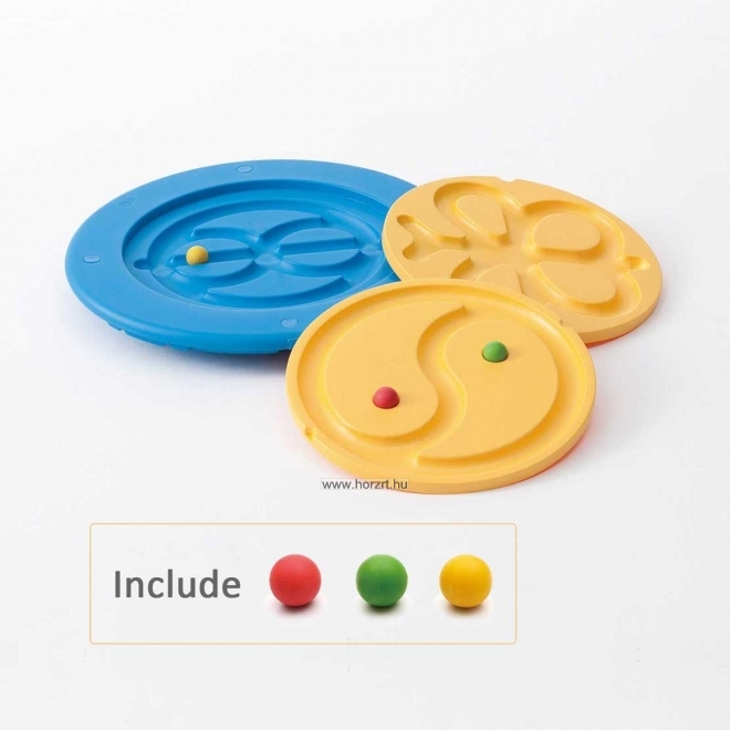 A korongot lassú billentő mozdulatokkal próbáljuk a golyót elvezetni az ösvényeken. Használhatjuk egyedül ráállva, vagy ülve, kézben tartva is. Kézben tartva kipróbálhatjuk ketten is. Ilyenkor próbáljuk a társunkkal úgy együttműködni, hogy a golyó ne essen le és végig tudjon gurulni a labirintuson. A három különböző színű golyónak eltérő a súlya, ezért a labirintuson keresztül haladva más lesz a sebességük. A nehezebb golyót, finomabb mozdulatokkal kell irányítani. A korongon és a plusz két betétlapon is lehet egyensúlyozni, vezetni a golyókat, változatosabbá téve a játékot.