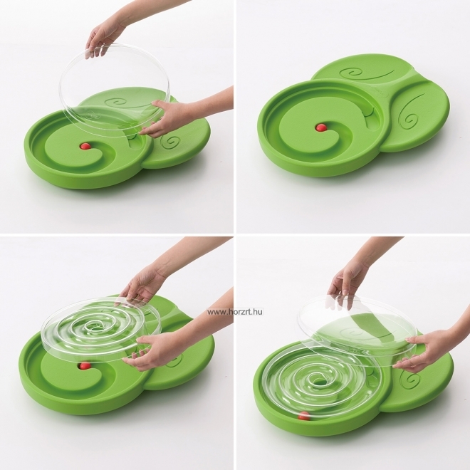 Az egyik átlátszó tetőt használva megakadályozhatjuk, hogy a golyó kiessen a labirintusból, míg a másik egy teljesen új útvonalon való tekergést tesz lehetővé.