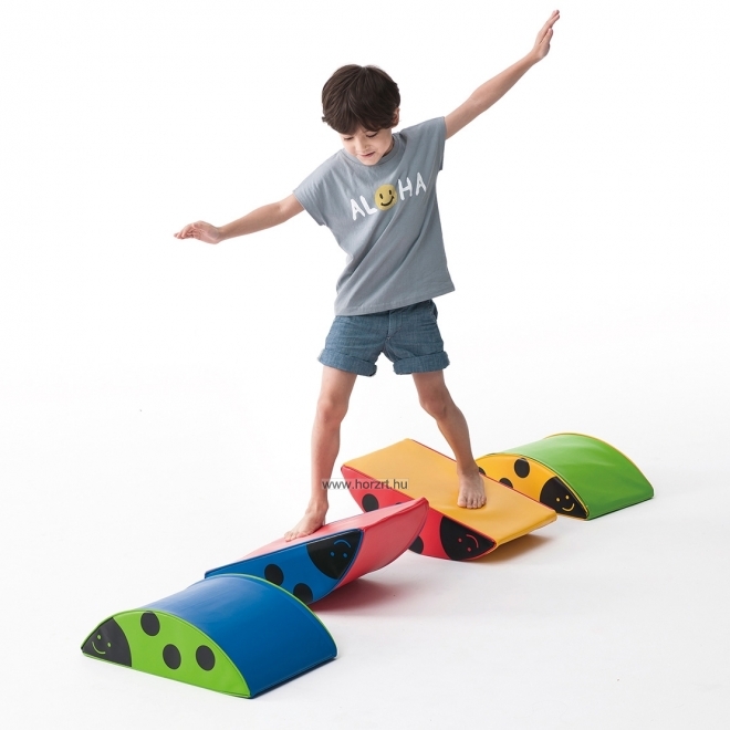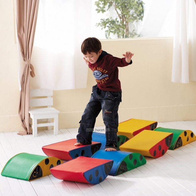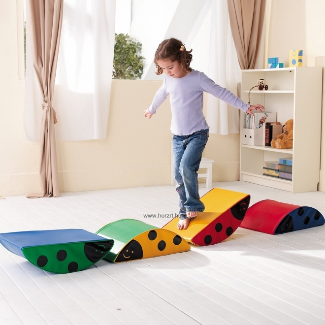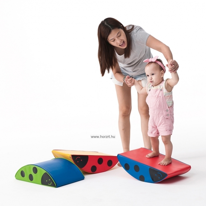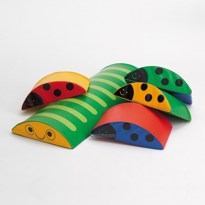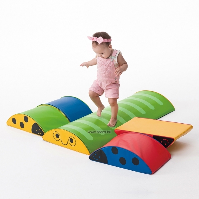 Vidám modulkészlet a legkisebbeknek piros, kék, sárga, zöld színekben. Használható az ívelt oldalukkal lefelé billenő elemnek, az egyenes oldalukkal lefelé pedig kis domboknak. A készlet tartalma: 4 db katica elem 1 db hernyó elem 6 hónapos korú gyermekek használatára CE minősítéssel ellátva!