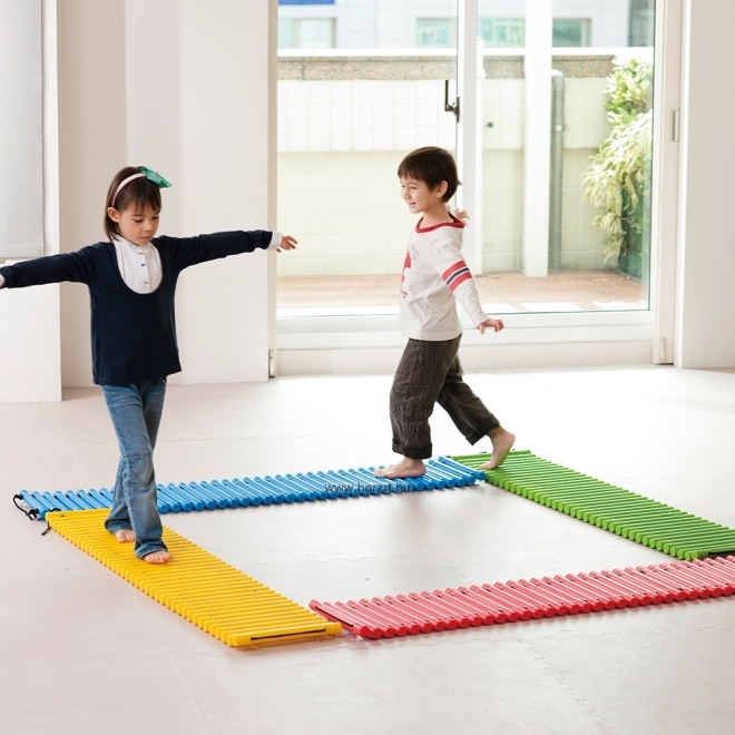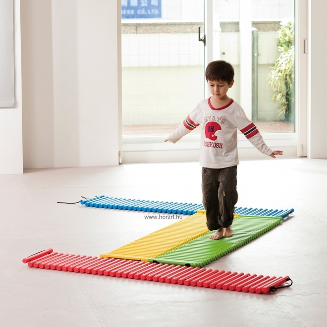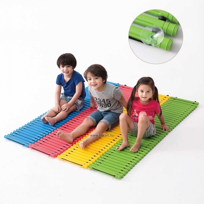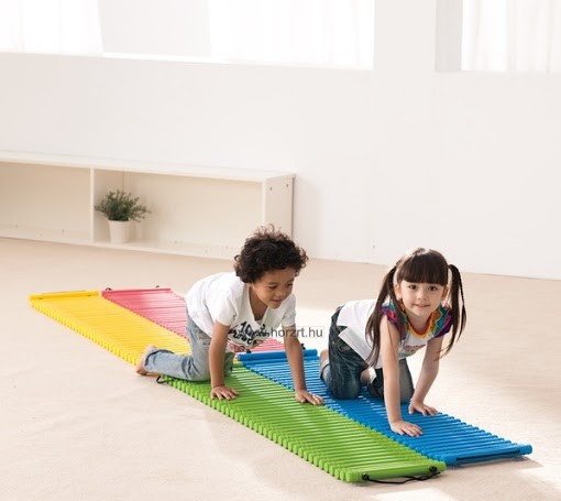 Az összefűzött műanyag rudak nyomást gyakorolnak a talp felületére, ezért járás közben fejlesztik a gyermekek idegrendszerét.