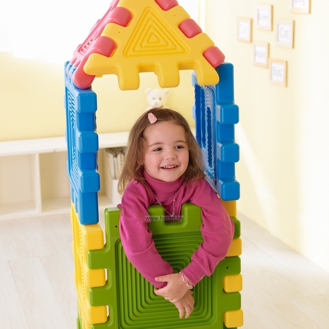 Mozgásfejlesztő eszközkészlet. Nagyméretű elemei különböző érdes felülettel rendelkeznek. Változatos formájú alakzatok építhetők belőlük síkban és térben is, melyek fejlesztik a gyermekek fantáziáját, alkotó készségét. A készlet tartalma: 12 db puzzle-szerűen síkban és térben összeilleszthető elem (8 db négyzet alakú, 4 db háromszög alakú): 4 db zöld teli négyzet, 2 db kék - 3 db téglalap ablakos négyzet, 2 db sárga - 4 db négyzet ablakos négyzet, 2 db sárga teli háromszög, 2 db piros teli háromszög. 2 éves korú gyermekek használatára CE minősítéssel ellátva!