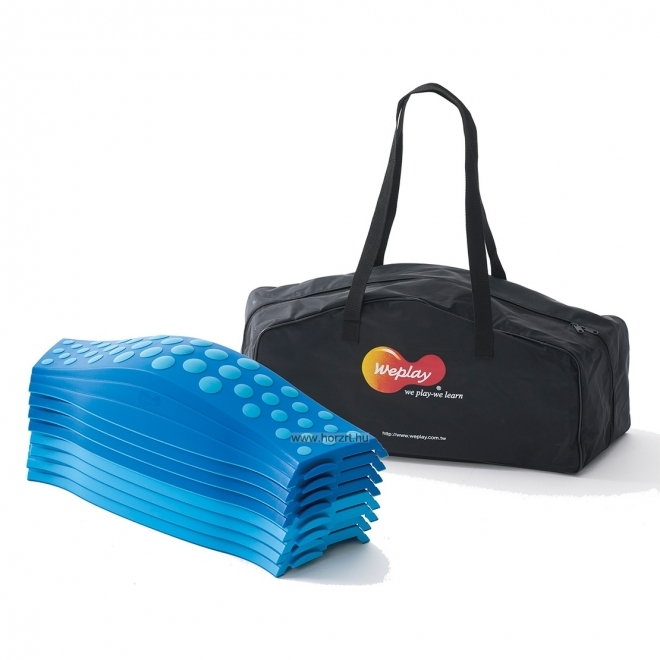 A hullámos elemekből és a folyami kövekből az összekötő elemek segítségével változatos egyensúlyozó pályát építhetünk. A különböző magasságú, mintázatú, érdes felületeken egyensúlyozva fejlődik a gyermekek koordinációja, egyensúlyozó képessége, taktilis észlelése. Ez kell majd a mozgáshoz!