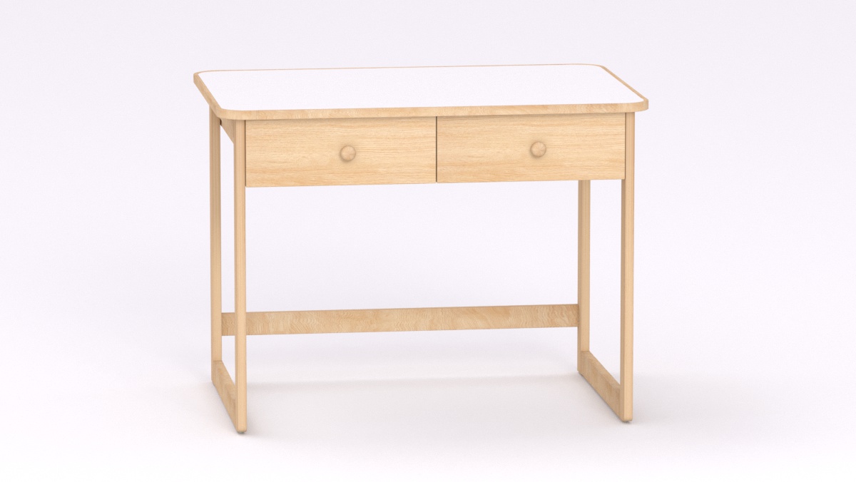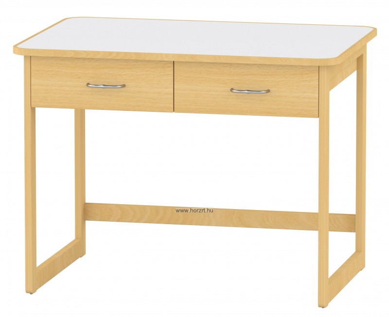 Mérete: 92x65x70 cm - 2 fiókos, anyaga: laminált bútorlap - keményfa élzárással, tömör bükkfa lábbal.Az asztal stílusa megegyzik a gyermek asztallal és ülőkével. Tömörfa lábai nyitott keretet alkotnak oldalról és hátulról is, így a kisgyermeknevelők kényelmesebben tudják használni és szellősebbé teszi a csoportszobát.