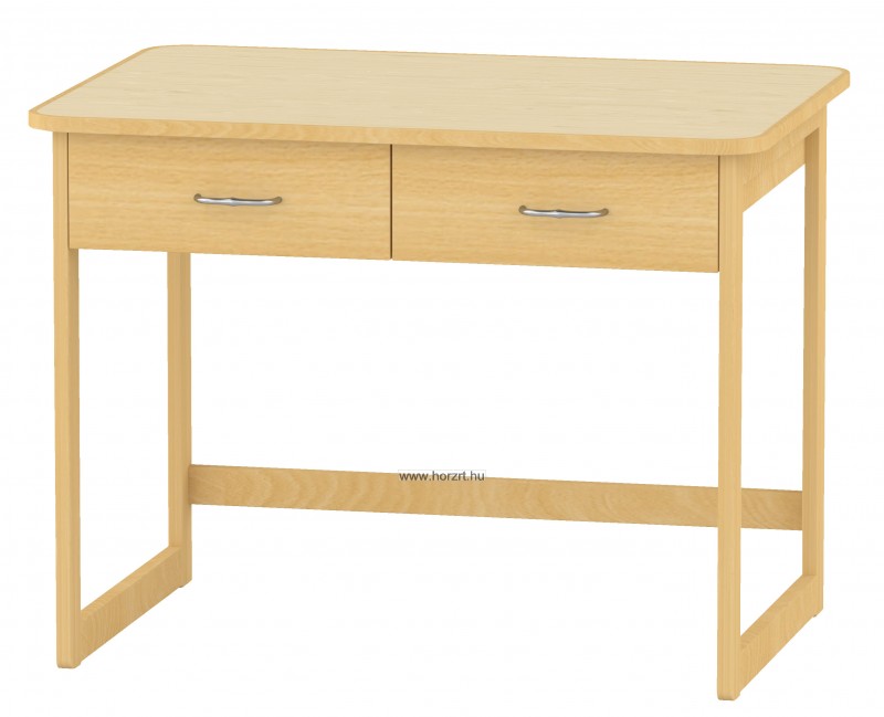 Mérete: 92x65x70 cm - 2 fiókos, anyaga: juhar laminált bútorlap - keményfa élzárással, tömör bükkfa lábbal.Az asztal stílusa megegyzik a gyermek asztallal és ülőkével. Tömörfa lábai nyitott keretet alkotnak oldalról és hátulról is, így a kisgyermeknevelők kényelmesebben tudják használni és szellősebbé teszi a csoportszobát.