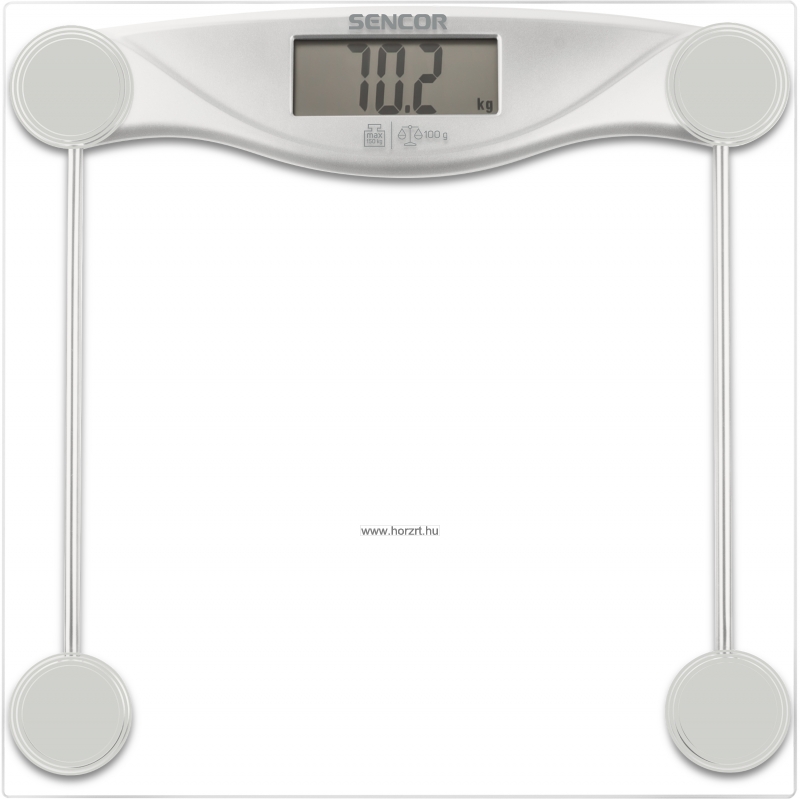 6 mm-es edzett üveglappal, vékony kivitel. Mérete: 32,5x31,2 cm. Mérési súlyhatár: 150 kg, mérési pontosság 100 g