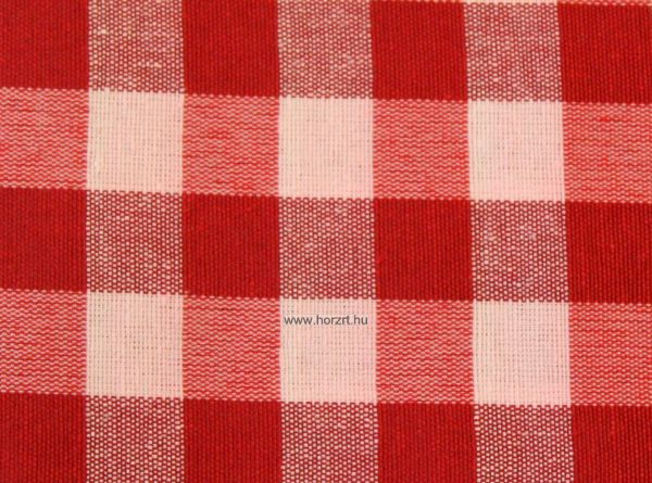 Piros színű, kockás impregnált abrosz. Erős textil anyagból készült, intézmények mindennapi használatára megfelelő. Víztaszító réteggel kezelt, nedves ruhával vagy mosógépben maximum 30 fokon mosható. A terítő széle vágott, szegést nem igényel. Az abrosz anyaga 55% pamut, 45% poliészter. Mérete 80x140 cm.