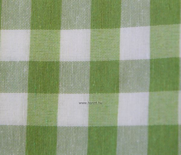 Puha pamutvászon abrosz, zöld színben. Az abrosz erős textil anyagból készült, az intézményi mindennapos használatra megfelelő. Szegélye beszegett, mosógépben mosható, könnyen vasalható. Mintája élénk zöld alapon fehér kockás. Szabályos négyzet alakú, mérete 80x80 cm.