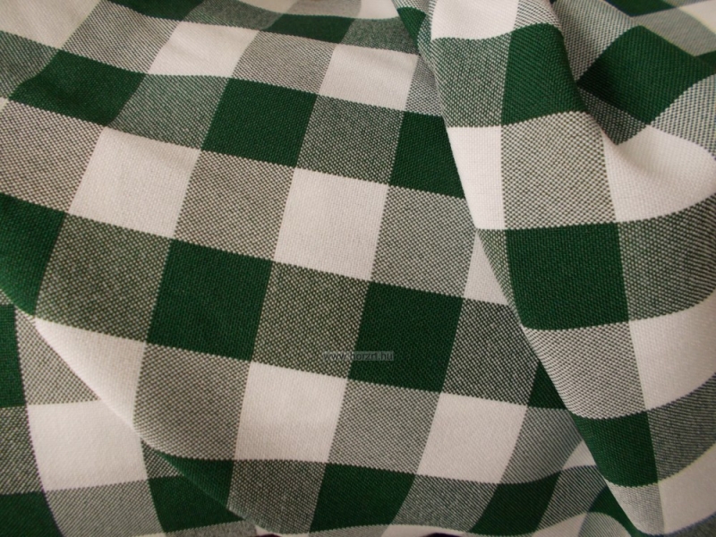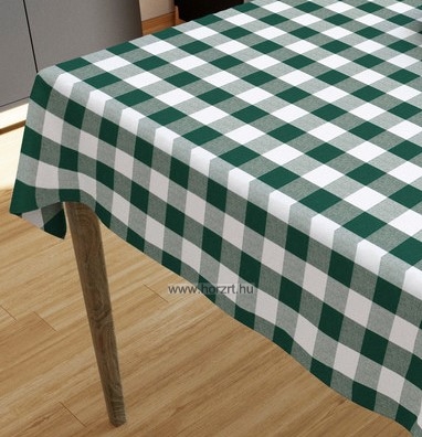 Puha pamutvászon abrosz, zöld színben. Az abrosz erős textil anyagból készült, az intézményi mindennapos használatra megfelelő. Szegélye beszegett, mosógépben mosható,könnyen vasalható. Mintája élénk zöld alapon fehér kockás. Szabályos négyzet alakú, mérete 140x140 cm.