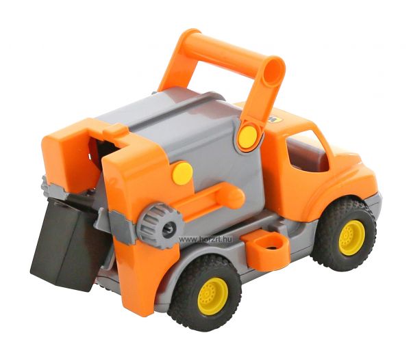 A legtöbb kisgyermek életében eljön az a pillanat, amikor legalább egy rövid időre kukás szeretne lenni. Ezzel a szuper autóval, most játékos formában bárki kipróbálhatja szemetesek életét. Minőségi, strapabíró műanyagból készült, tetején egy masszív fogantyúval, hogy könnyű legyen felkapni és odébb vinni. Az oldalán található tekerő segítségével üríthető a kuka "tartalma" az autóba.